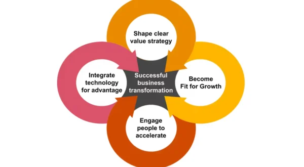 To transform a company, the framework must be built on essential strategic components that work together seamlessly. These include: